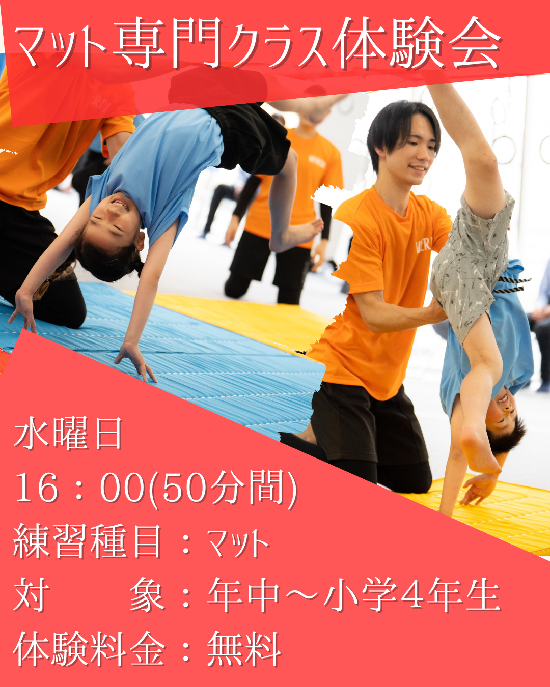 マットを体験されたい方やマット技を向上させたい方におすすめ!お気軽にお試しください!